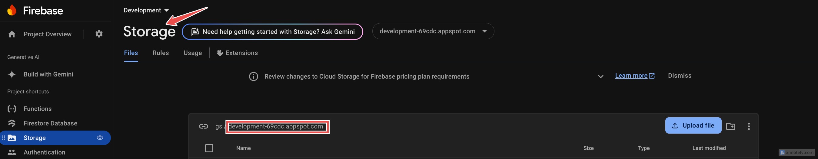 to the storage bucket name of your firebase project where you can find it in Storage section. Replace it with what you see here: