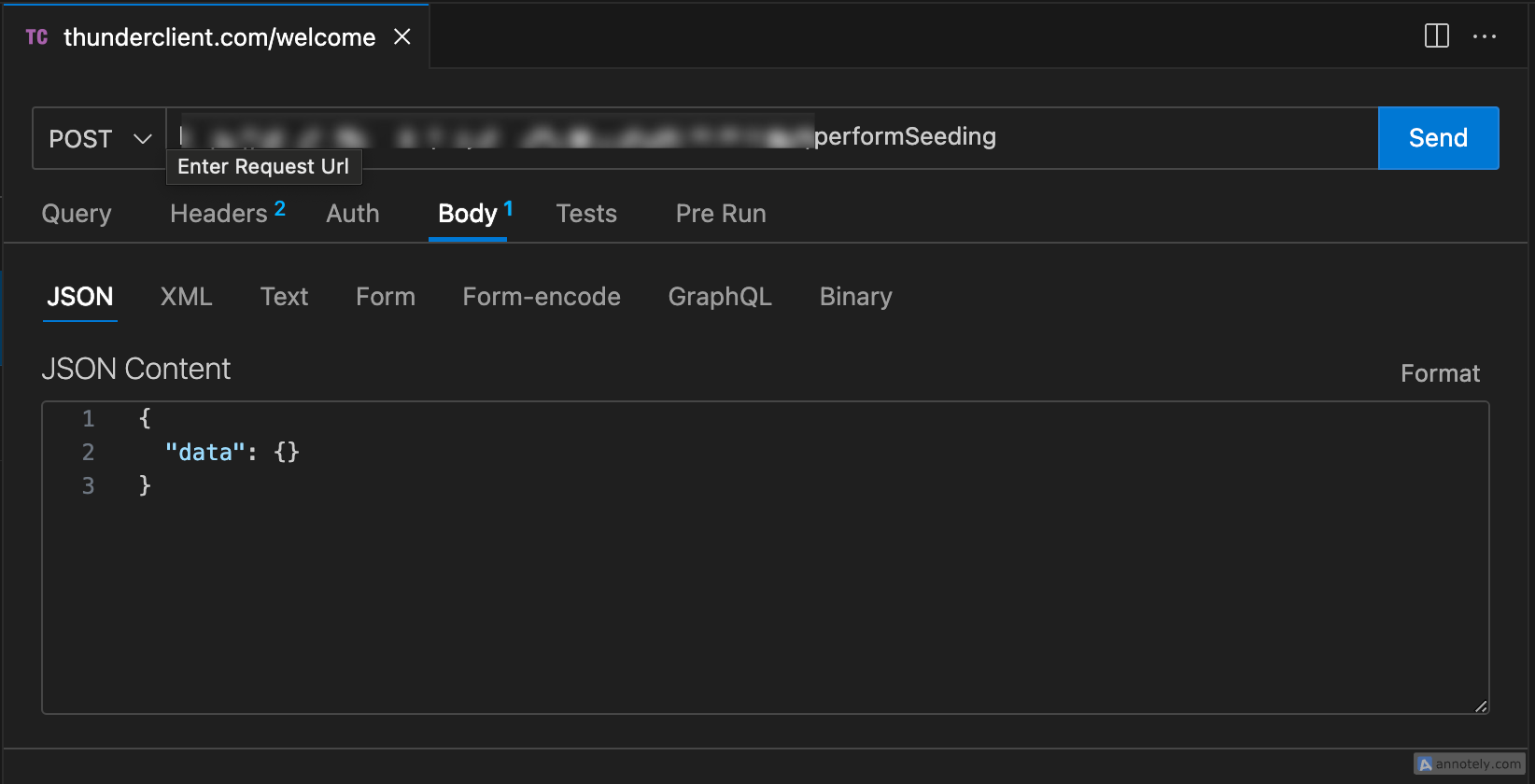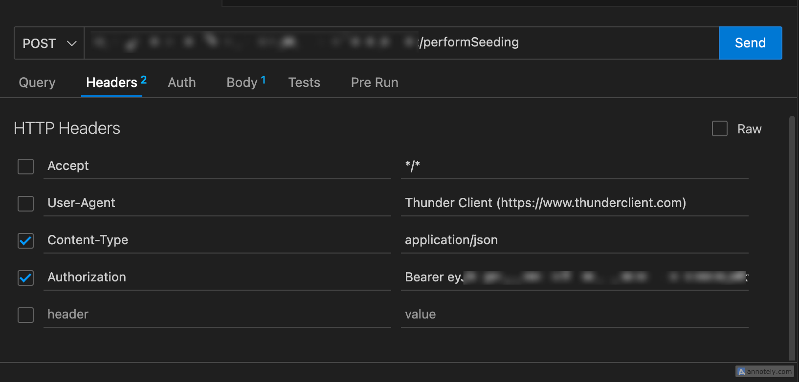 With your authentication token and function URL, you can now make the seeding request using any API client like (Postman, Insomnia, or VS Code's Thunder Client):